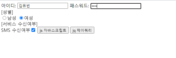 SMS 수신여부<input type="checkbox" name="sms" value="Y">
