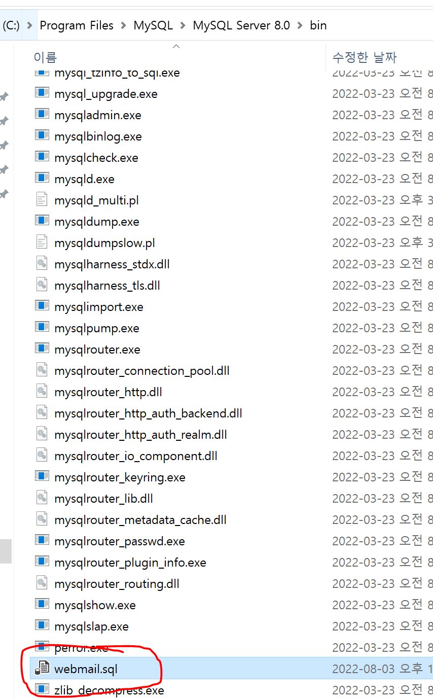 해당 경로에 내가 쓴 데이터베이스 명과 동일한 sql 파일이 만들어졌으면 성공