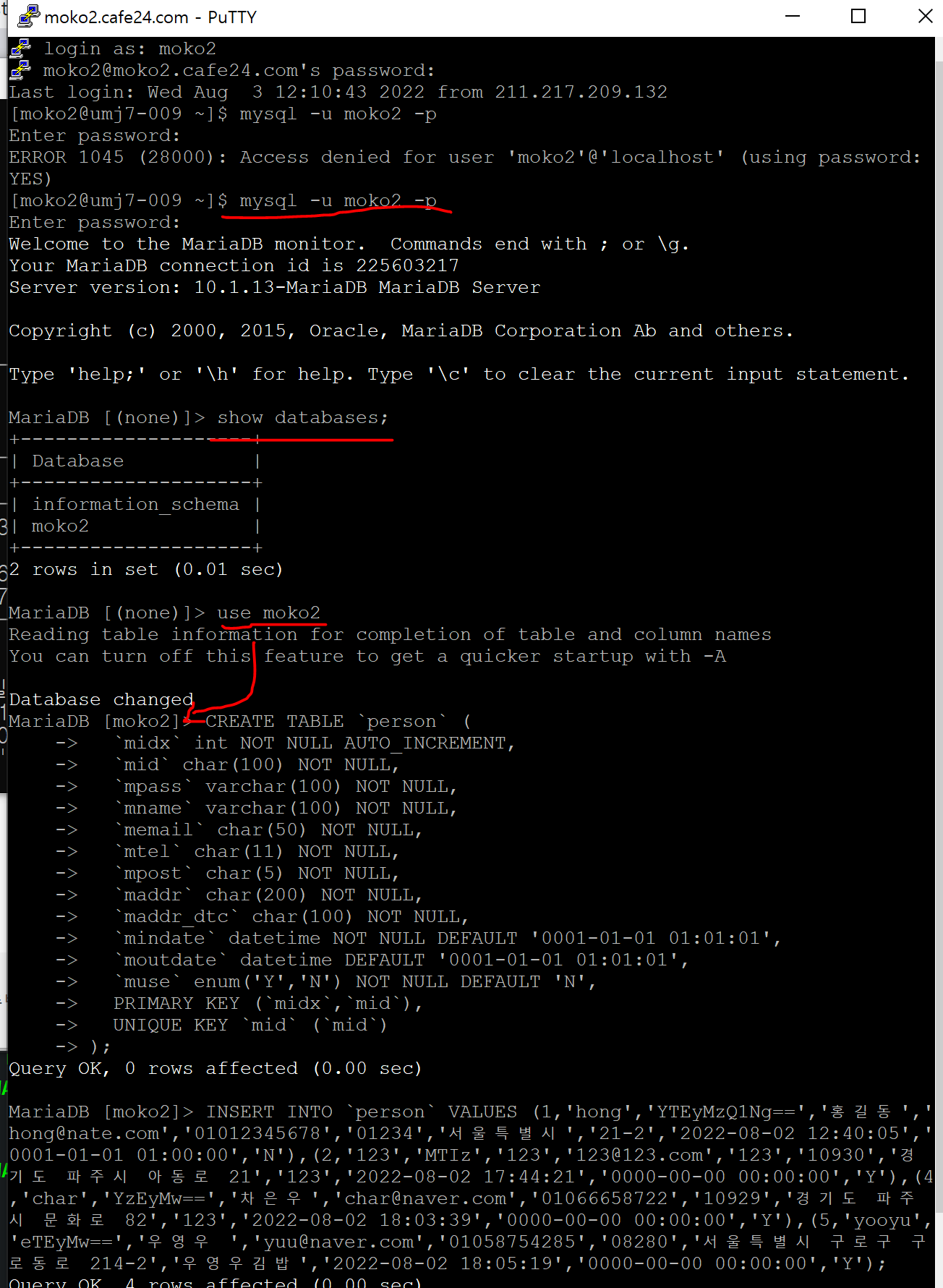 Mysql 파일을 열어서 테이블 생성하고 값을 insert해줬다 ㅎㅎ 그방법은?