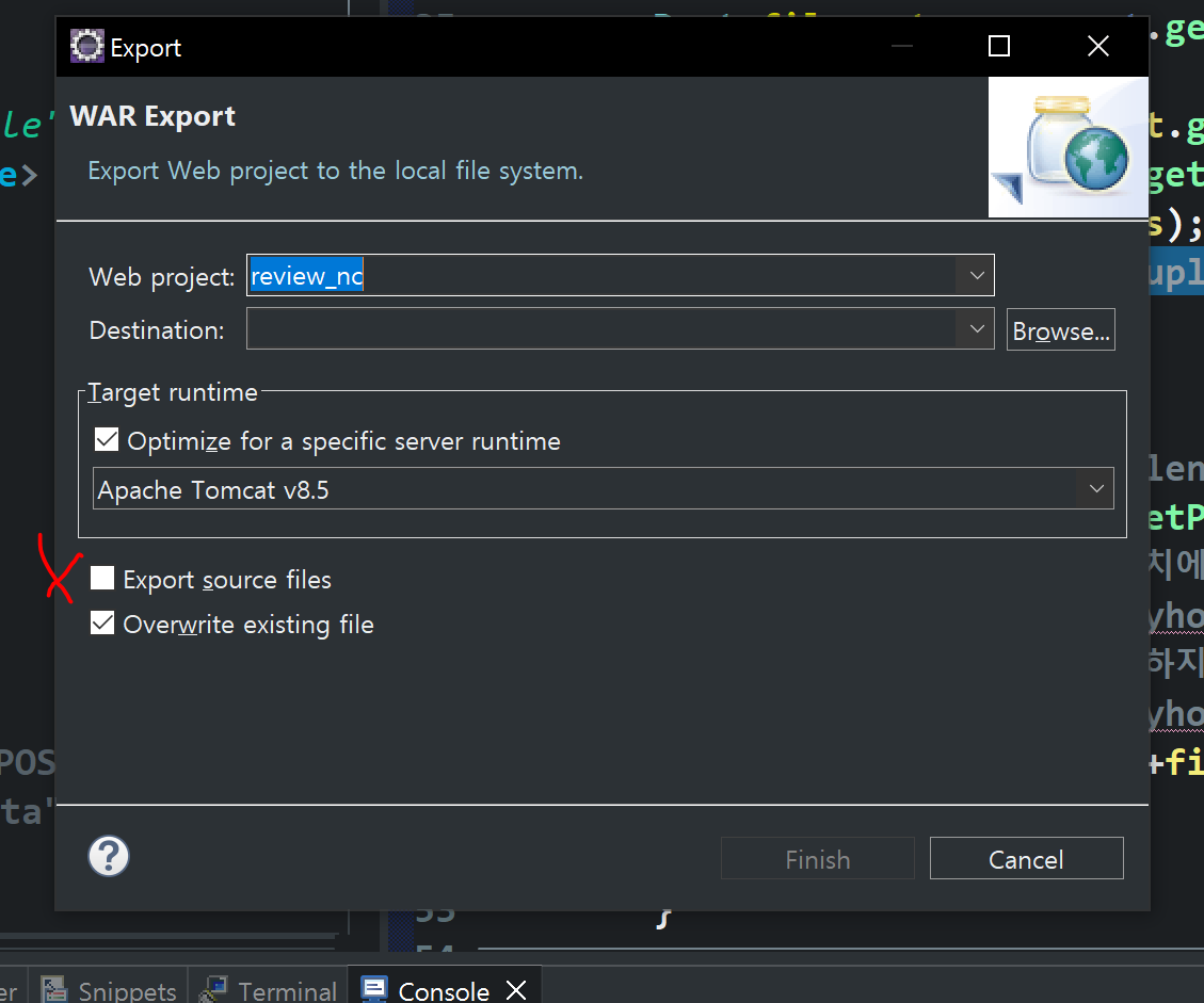 Export source files에 절때 체크 하면 안 된다!~~
