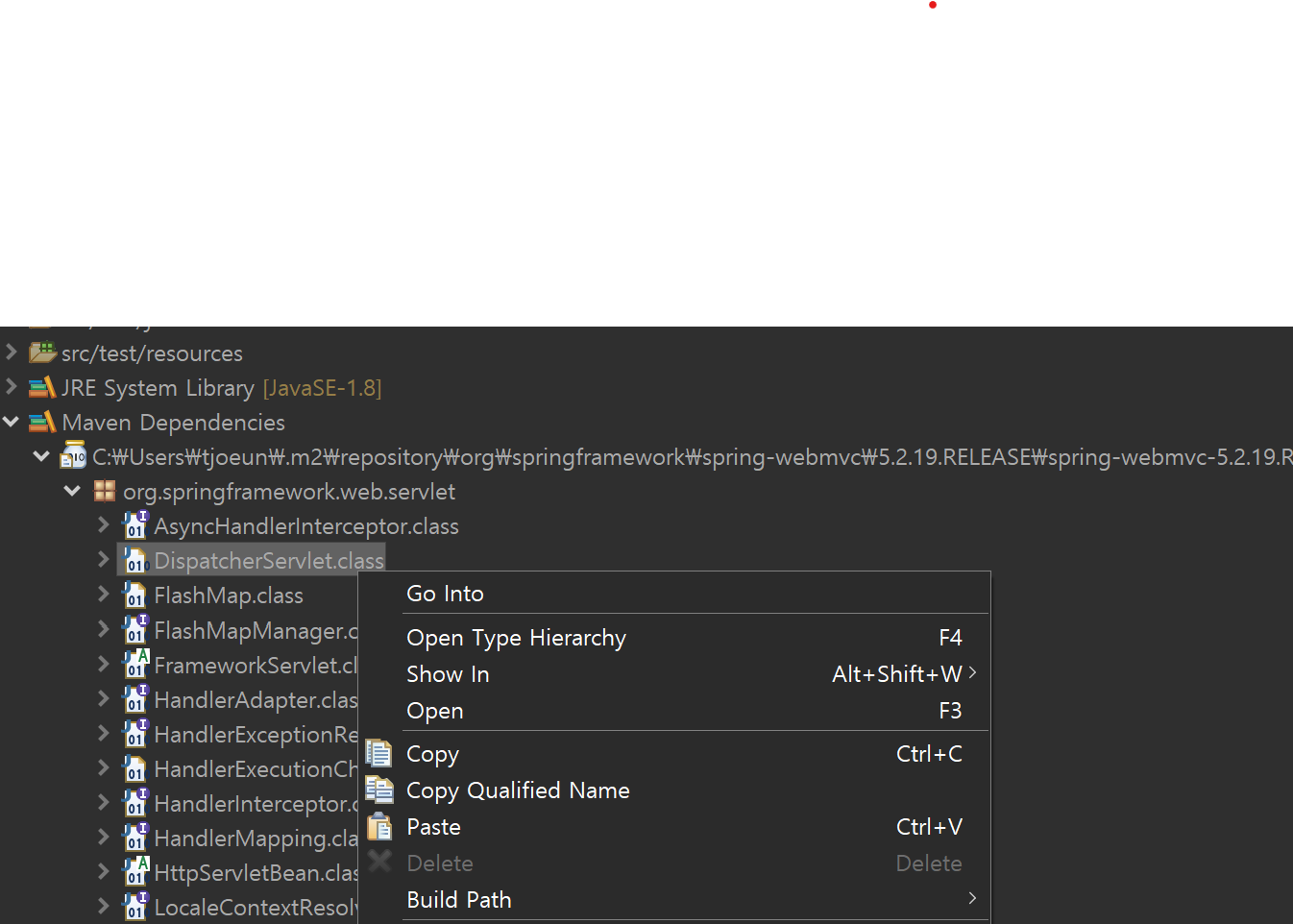 copy Qualified Name 눌러서 복사한다.