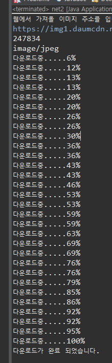System.out.println("다운로드중....."+(cnt*100)/imgsize+"%");