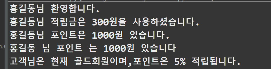 print("고객님은 현재 골드회원이며,"+msg+"은 "+str(point)+"% 적립됩니다.")
