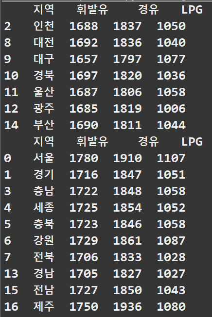 filter3=data.loc[(data["휘발유"]<=1700) & (data["경유"]<=1800)]