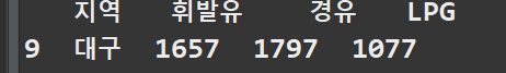 filter2=data.loc[(data["휘발유"]<=1700) & (data["지역"]=="대구")]