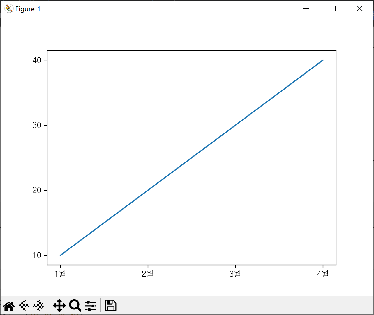 mpt.xticks(data1, ['1월','2월','3월','4월']) #y축 10단위씩