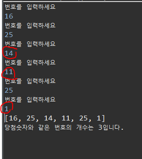 count++; //로또 번호와 사용자 입력 번호가 중복되면 +1씩 증가