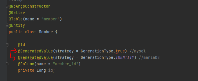 @GeneratedValue(strategy = GenerationType.IDENTITY) //mariaDB