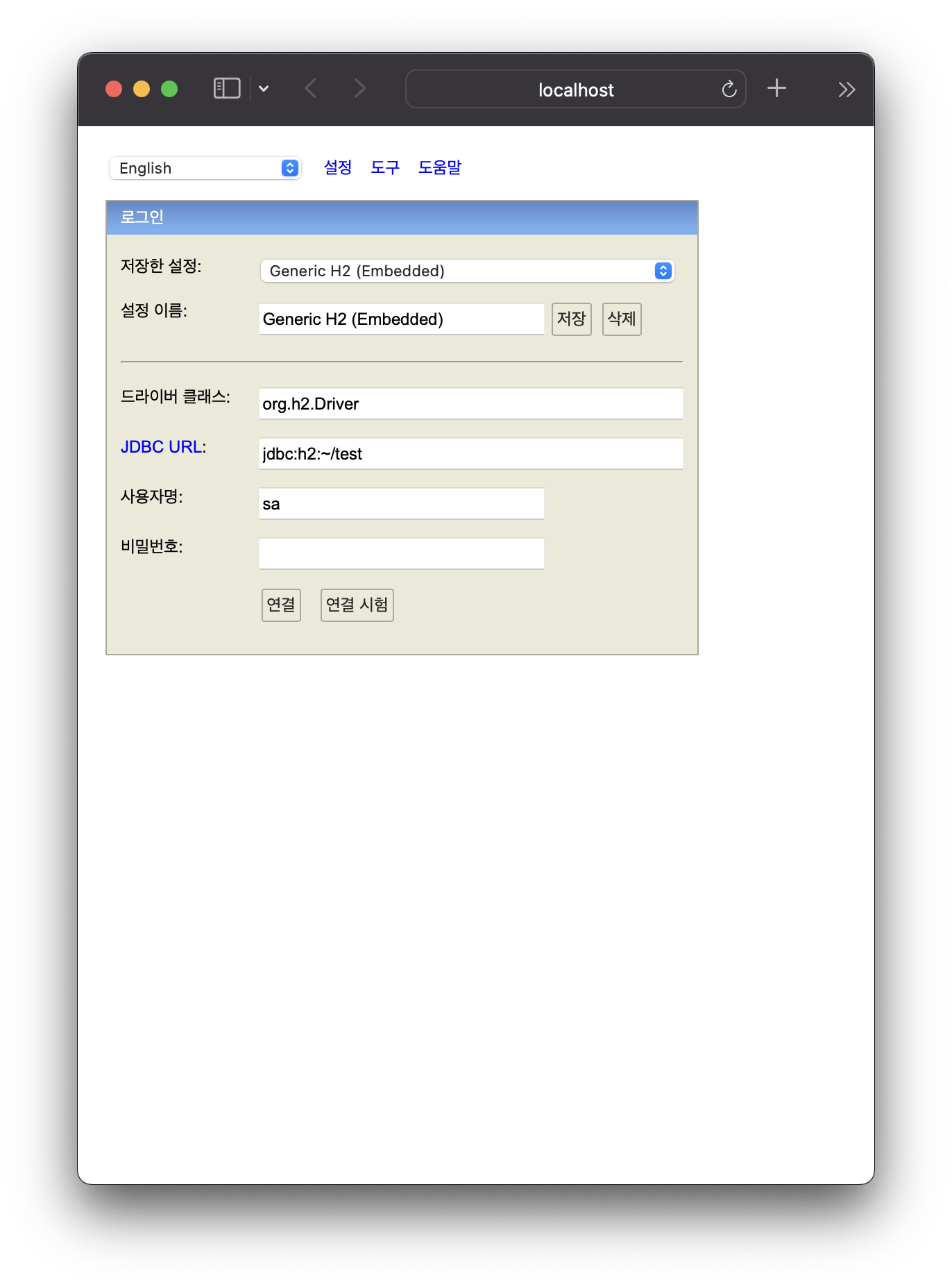 사파리 창이 열리면서 h2 가 실행된다.