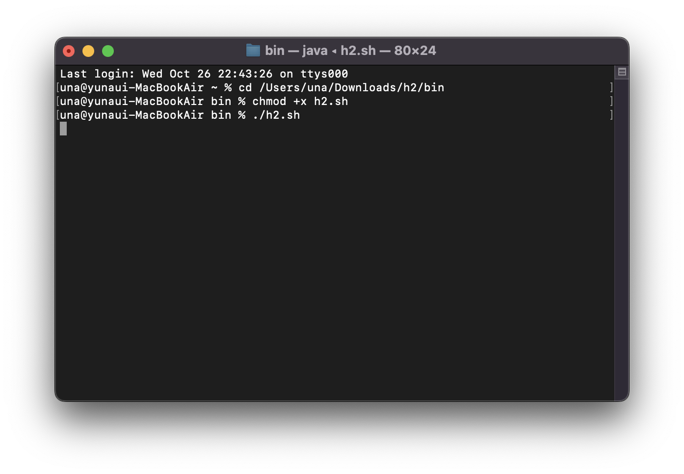 una@yunaui-MacBookAir bin % chmod +x h2.sh