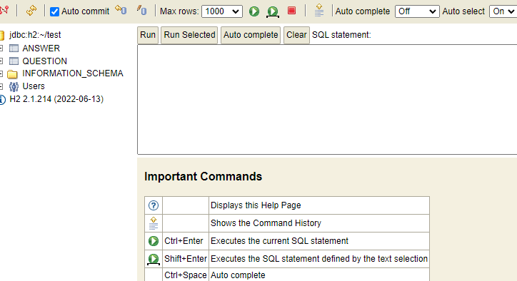 이제 다시 H2 콘솔로 로그인하면 정상 동작하는 것을 확인할 수 있다.
