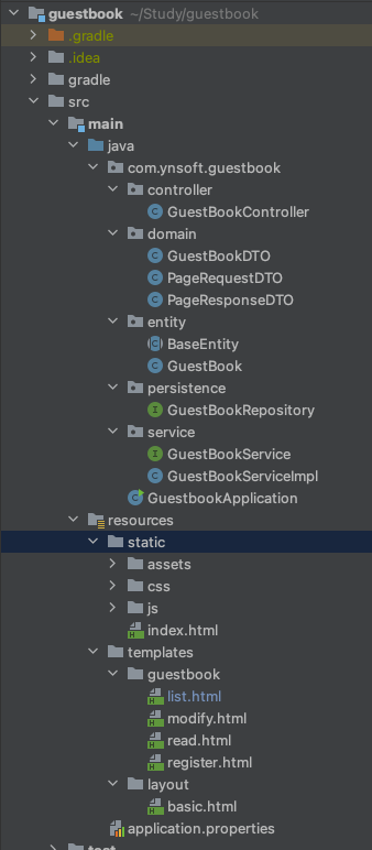 ⇒templates 디렉토리에 layout (기본 레이아웃 파일 설정) 디렉토리를 생성 ⇒templates 디렉토리에 guestbook (화면에 보여지는 뷰)디렉토리 생성