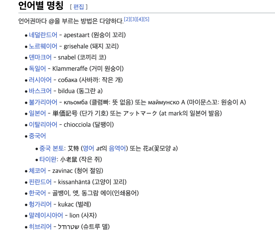 문득 다른 나라들은 @ 를 뭐라고 부르는지 궁금해졌다.