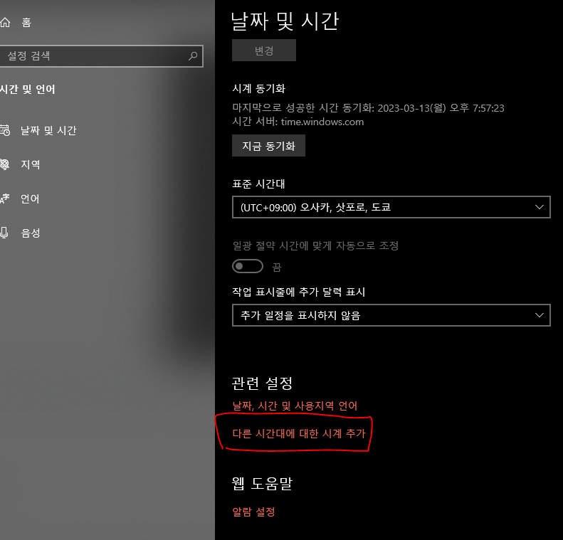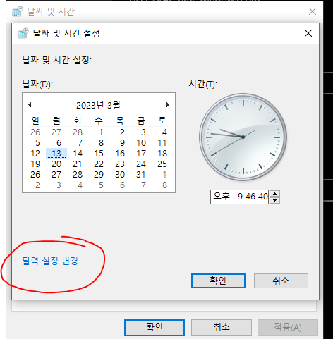 바탕화면 우측 하단 날짜 시간쪽에 우클릭 > 날짜/시간 조정