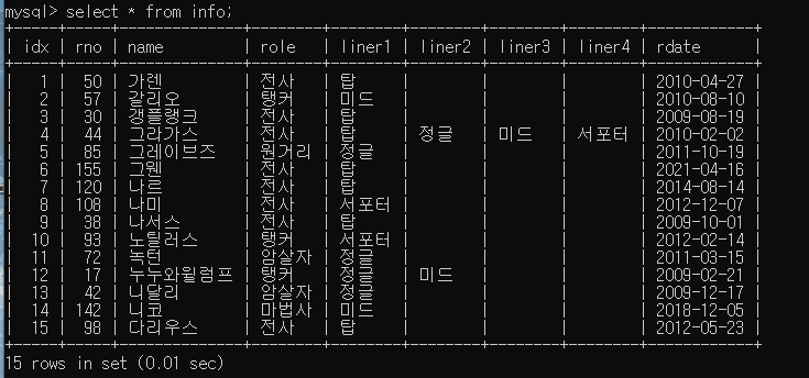 테이블 info, item, paly를 합쳐보겠습니다.