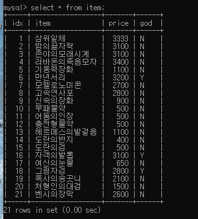 그 다음 아이템 가격은 sum해줍니다. 여기서 as총구매가격 이라는 가상이름을 붙혀주었기 떄문에