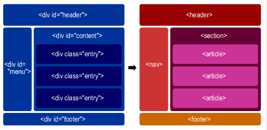대표적으로 div태그를 사용해서 id나 class로 의미를 갖게 했지만,