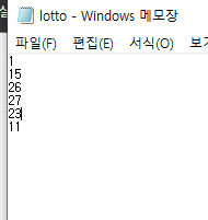 총 6번의 숫자를 입력받게됩니다.그리고 lotto.txt결과를 가진 파일을 로드하여