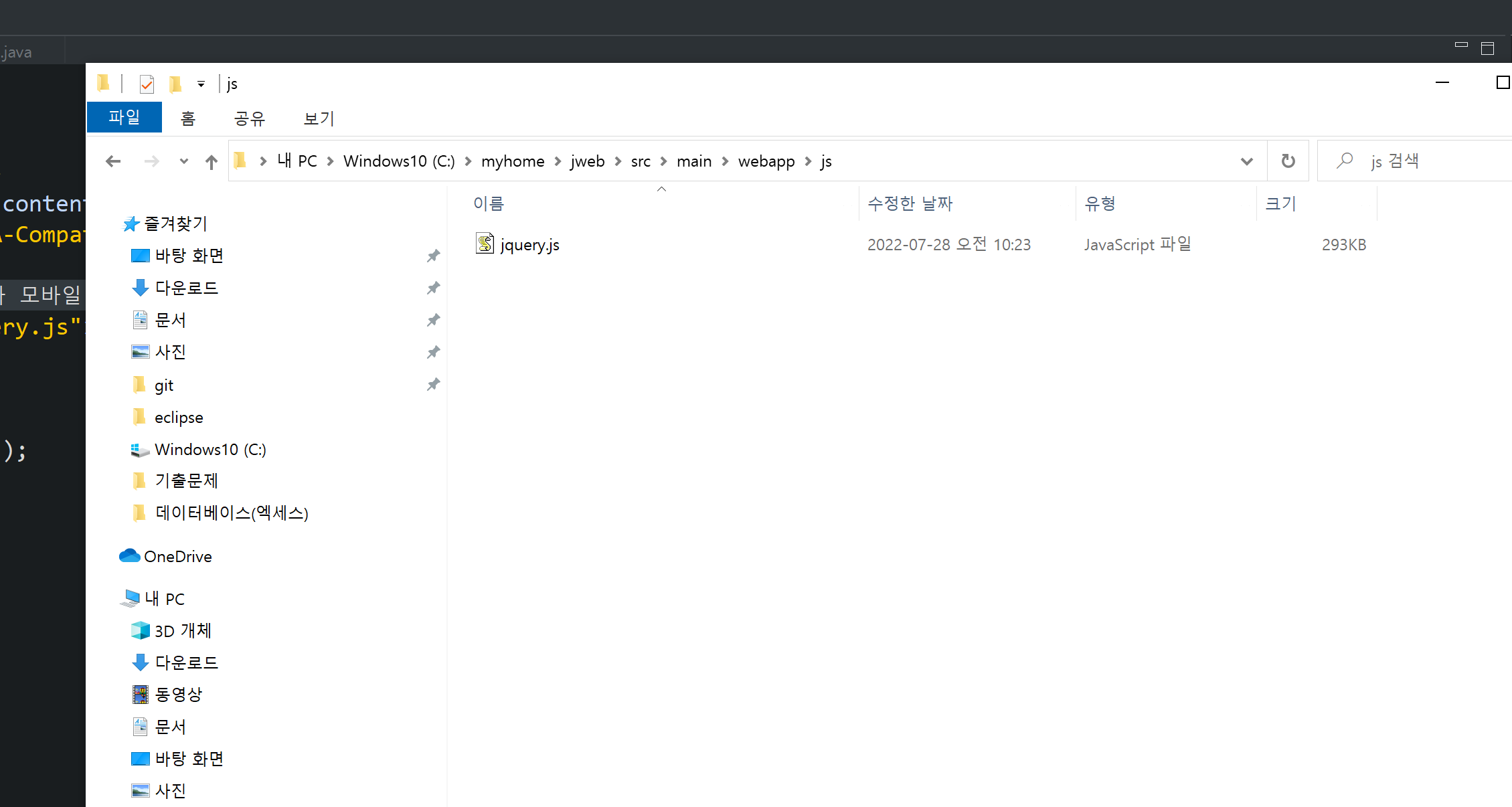 내가 하려고하는 폴더까지 들어감!! 나는 j쿼리 만든 js폴더로들어갔음