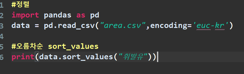 Python pandas7 #정렬 #sort _values#sort_values #ascending=False