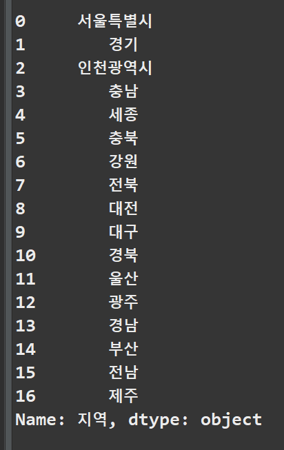 #print(data.replace({"서울":"서울특별시","인천":"인천광역시"}))